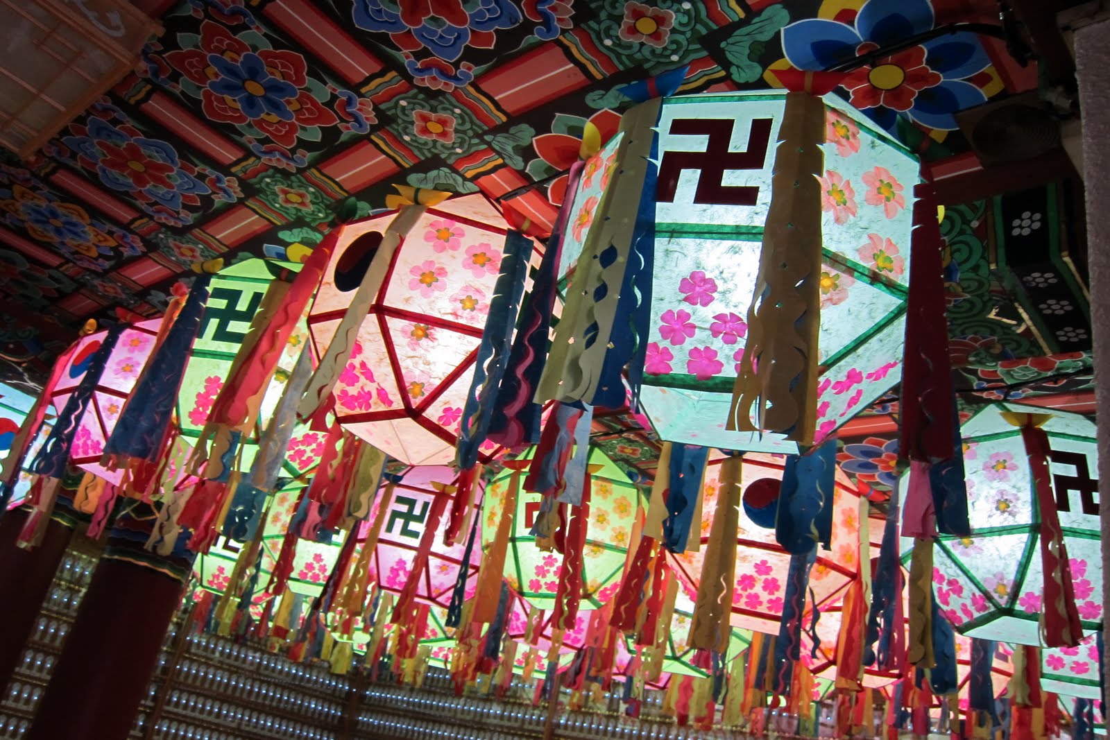 1. What's up with the Swastikas on the lanterns and... why are all the young women in the couple shots carrying their own purses??? Has there been some cultural shift?